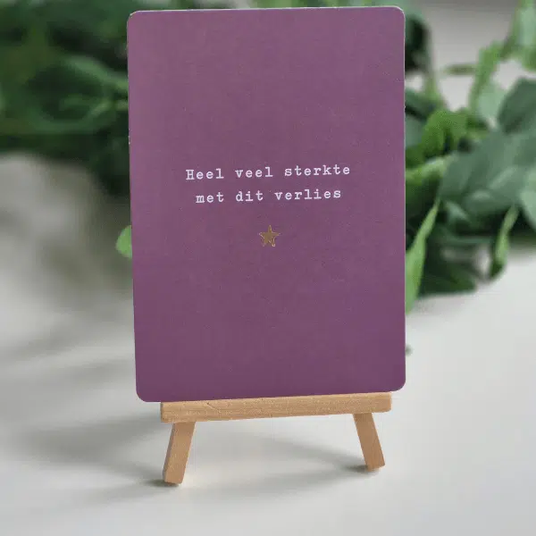 Verwerk de kaart veel sterkte met dit verlies in een boeket of een troostgeschenk om te laten weten dat je een ander ziet en er bent voor hem of haar.